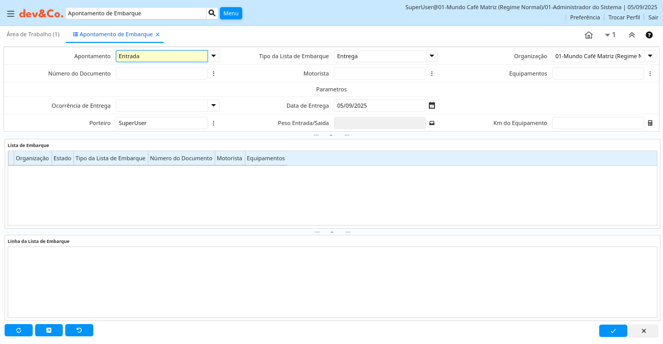 Descrição: Apontamento de Embarque