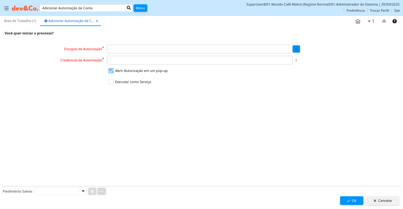 | Credencial de Autorização | AD_AuthorizationCredential_ID Chosen Multiple Selection Table | ||