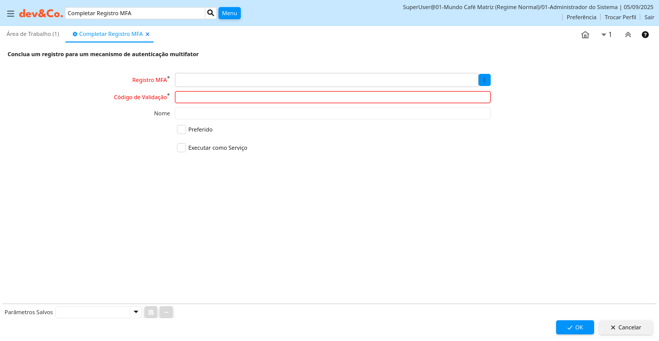 Descrição: Conclua um registro para um mecanismo de autenticação multifator