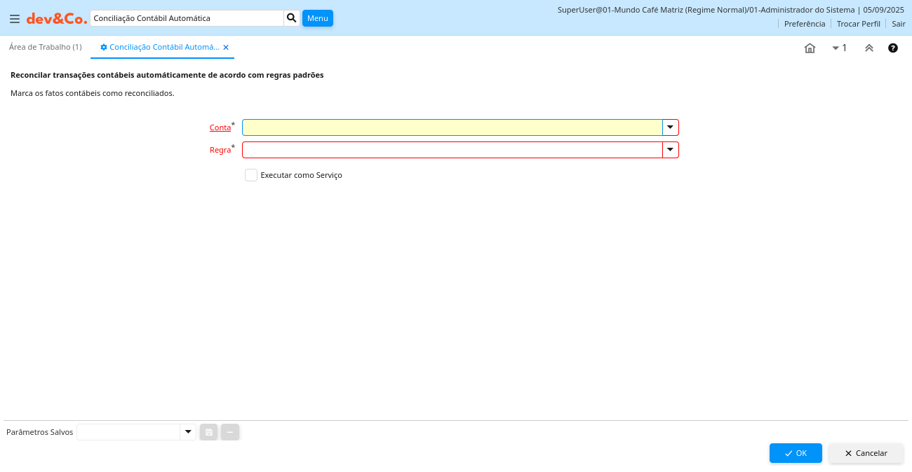 Descrição: Reconcilar transações contábeis automáticamente de acordo com regras padrões
