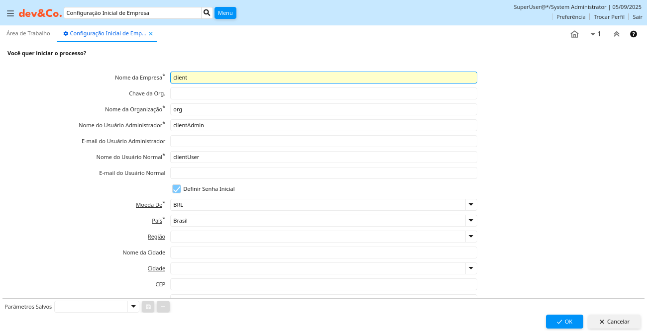 Classe: org.adempiere.process.InitialClientSetup
