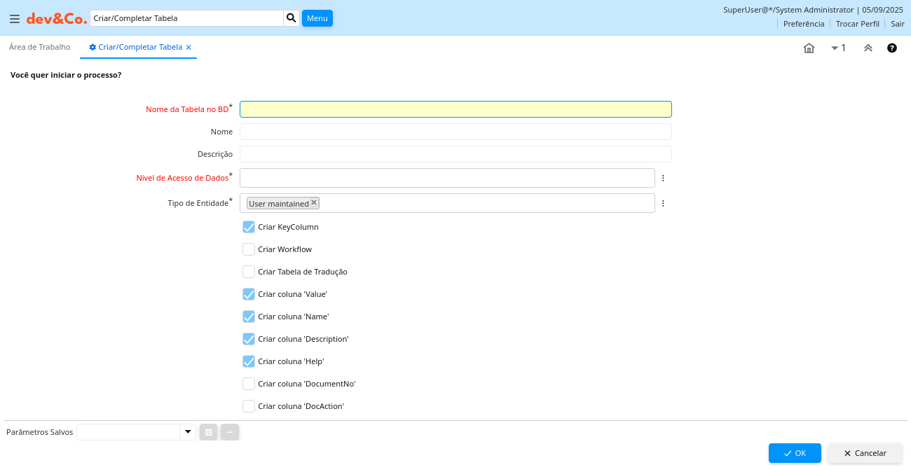 | Criar coluna 'DocAction' | IsCreateColDocAction Yes-No | ||