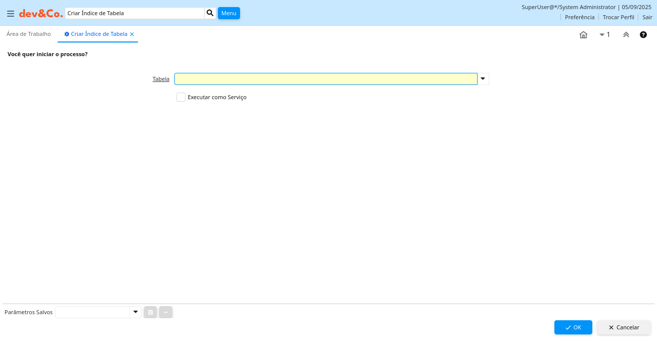 | Tabela | Informação da Tabela no Banco de Dados | A Tabela no Banco de Dados fornece informações das Definições da Tabela. | AD_Table_ID Table Direct |