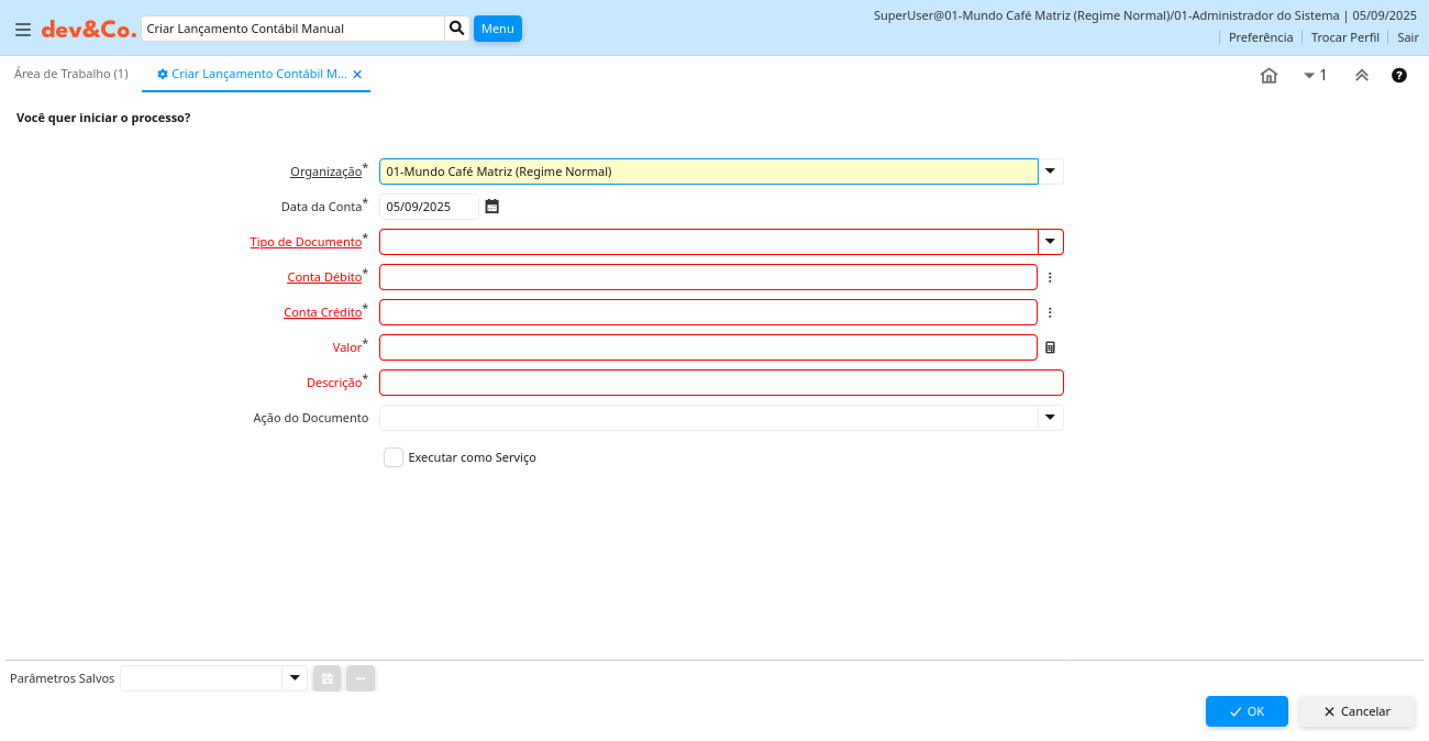 Processo: Criar Lançamento Contábil Manual