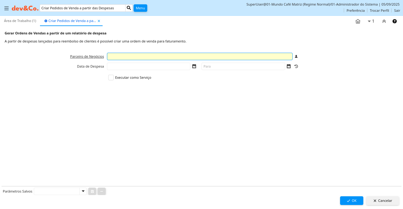 Descrição: Gerar Ordens de Vendas a partir de um relatório de despesa