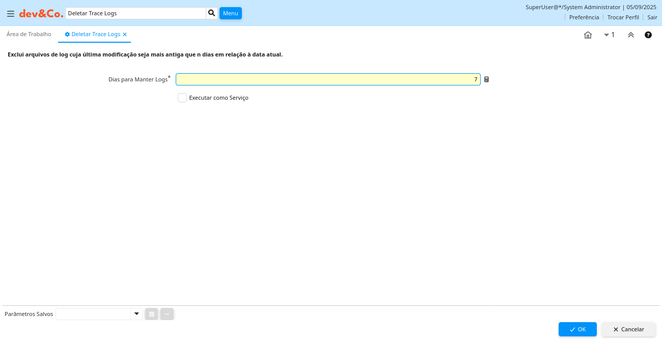 Descrição: Exclui arquivos de log cuja última modificação seja mais antiga que n dias em relação à data atual.