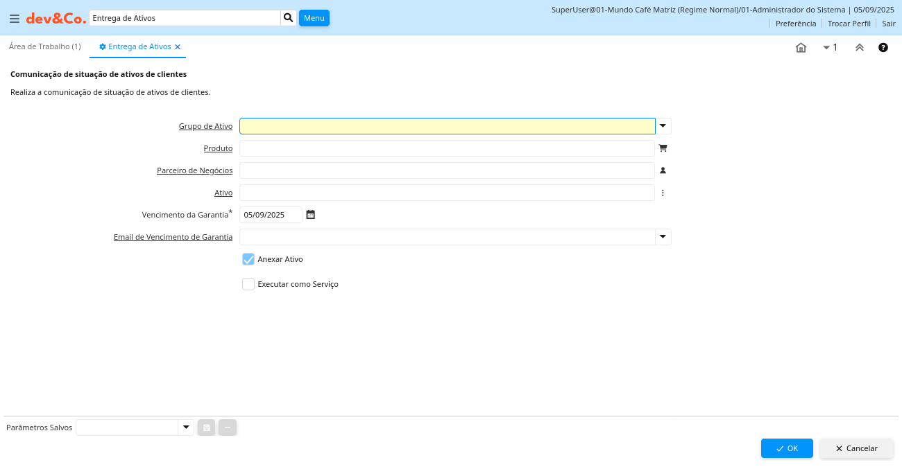| Anexar Ativo | Anexar Ativo a ser entregue por email | AttachAsset Yes-No |
