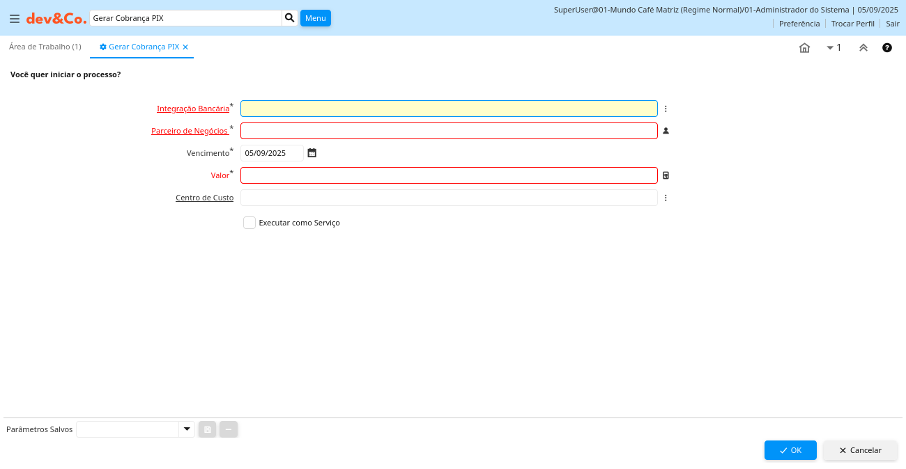 Processo: Gerar Cobrança PIX