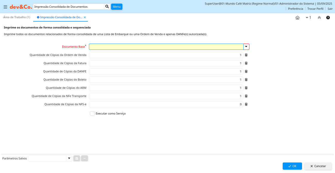 Ajuda: Imprime todos os documentos relacionados de forma consolidada de uma Lista de Embarque ou uma Ordem de Venda e apenas DANFe(s) autorizada(s).