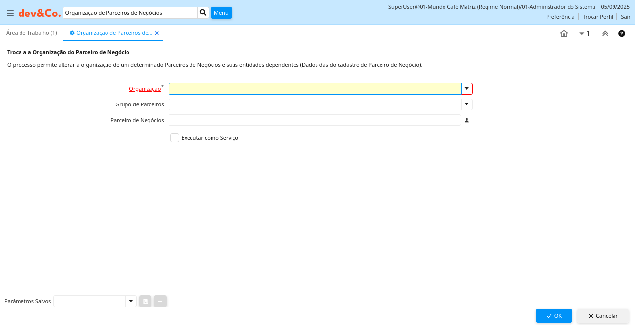 Descrição: Troca a a Organização do Parceiro de Negócio