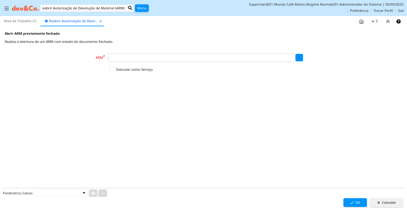 Processo: Reabrir Autorização de Devolução de Material (ARM)