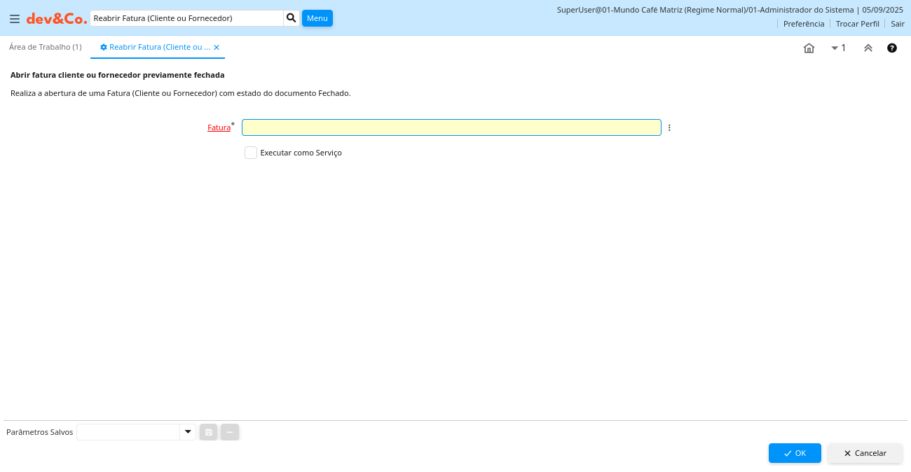 Descrição: Abrir fatura cliente ou fornecedor previamente fechada
