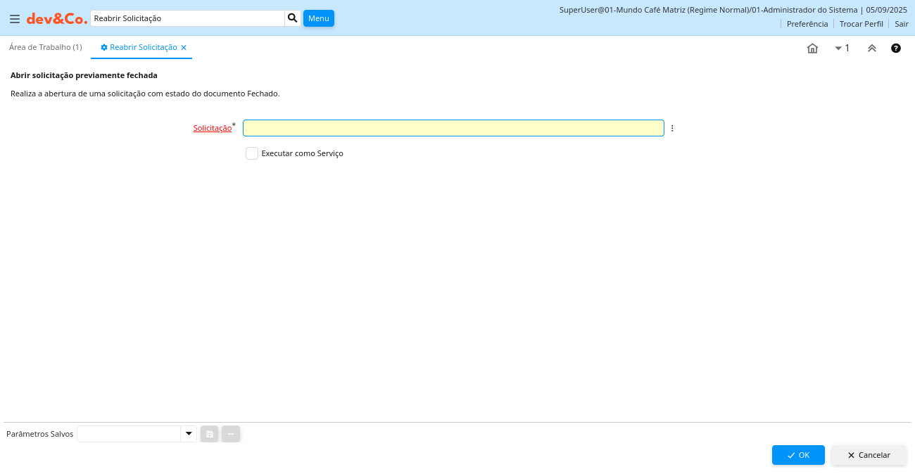 Ajuda: Realiza a abertura de uma solicitação com estado do documento Fechado.