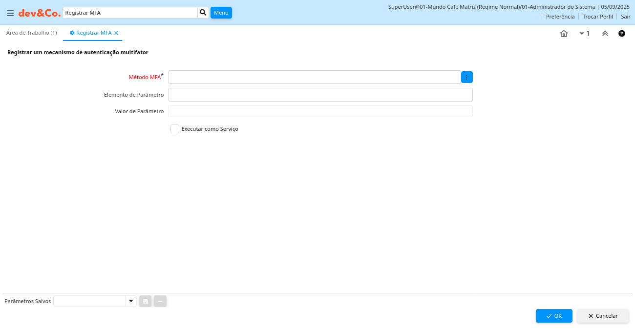 Descrição: Registrar um mecanismo de autenticação multifator