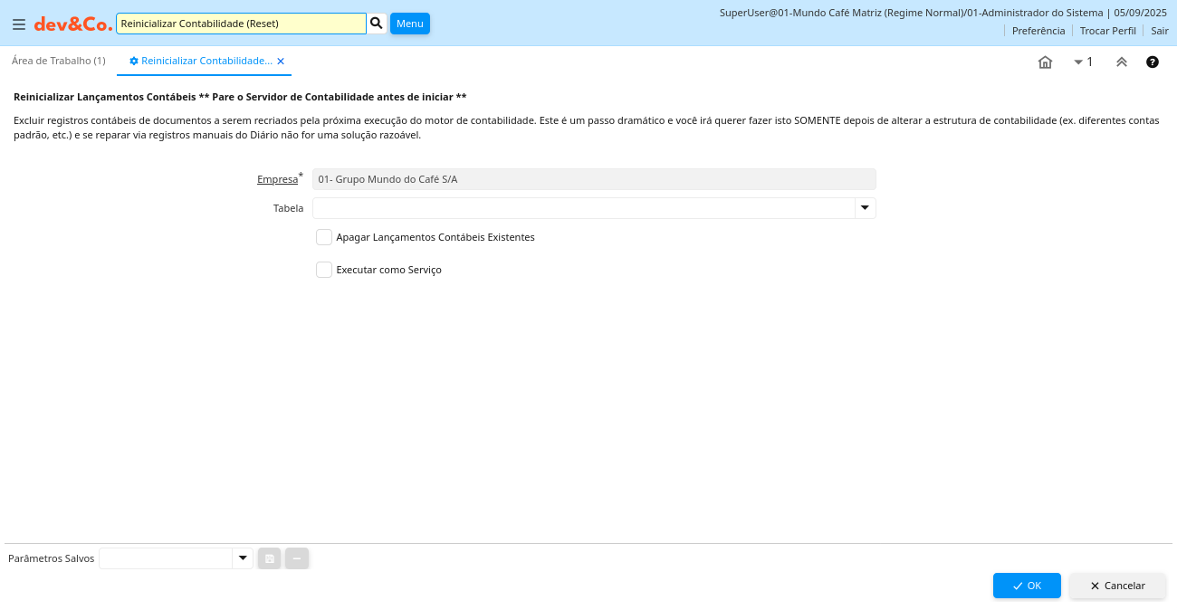 Processo: Reinicializar Contabilidade (Reset)