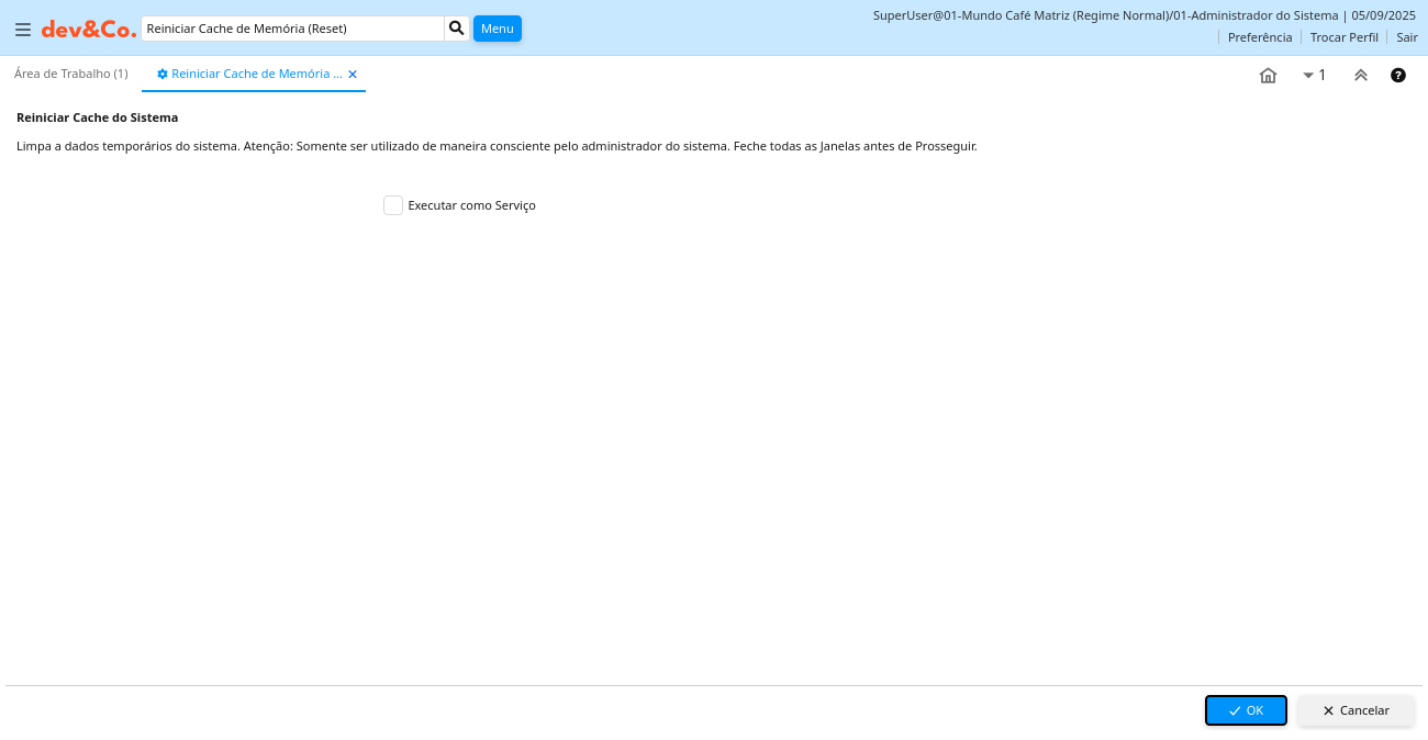 Descrição: Reiniciar Cache do Sistema