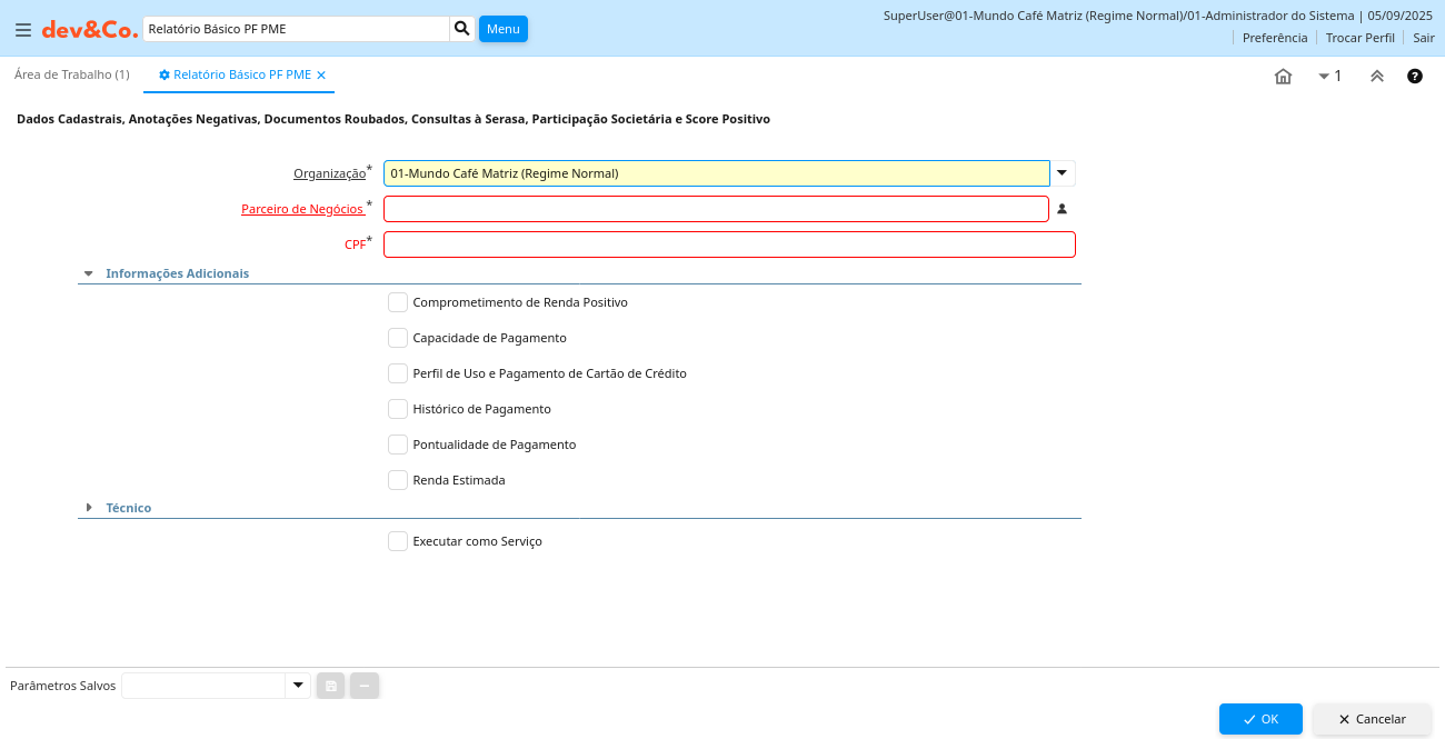 Descrição: Dados Cadastrais, Anotações Negativas, Documentos Roubados, Consultas à Serasa, Participação Societária e Score Positivo