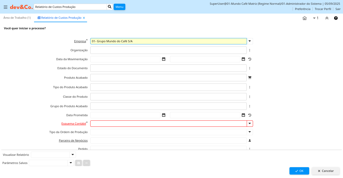 Processo: Relatório de Custos Produção