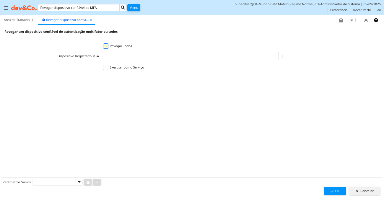 | Revogar Todos | MFARevokeAll Yes-No | ||