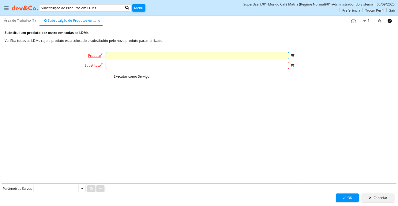 Descrição: Substitui um produto por outro em todas as LDMs