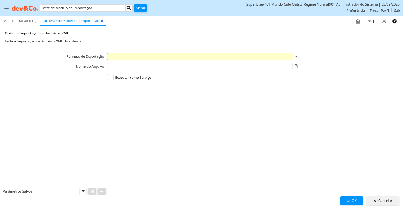 Ajuda: Testa a Importação de Arquivos XML do sistema.