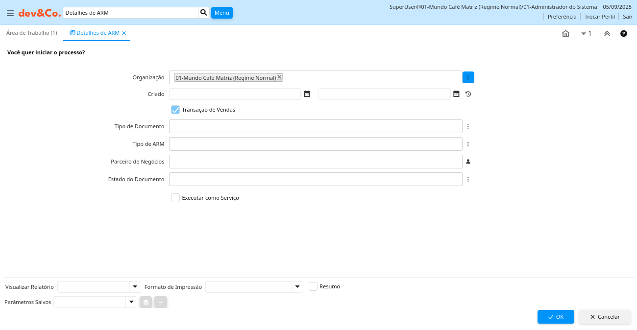 | Tipo de Documento | Tipo de Documento ou regras | O "Tipo de Documento" determina a seqüência do documento e as regras de processamento | C_DocType_ID Chosen Multiple Selection Table |