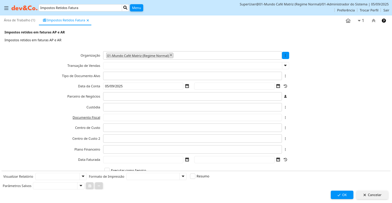 Relatório: Impostos Retidos Fatura