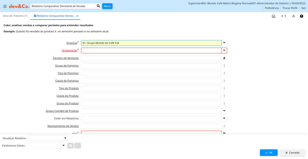 Ajuda: Exemplo: Quanto foi vendido do produto X no semestre passado e no semestre atual