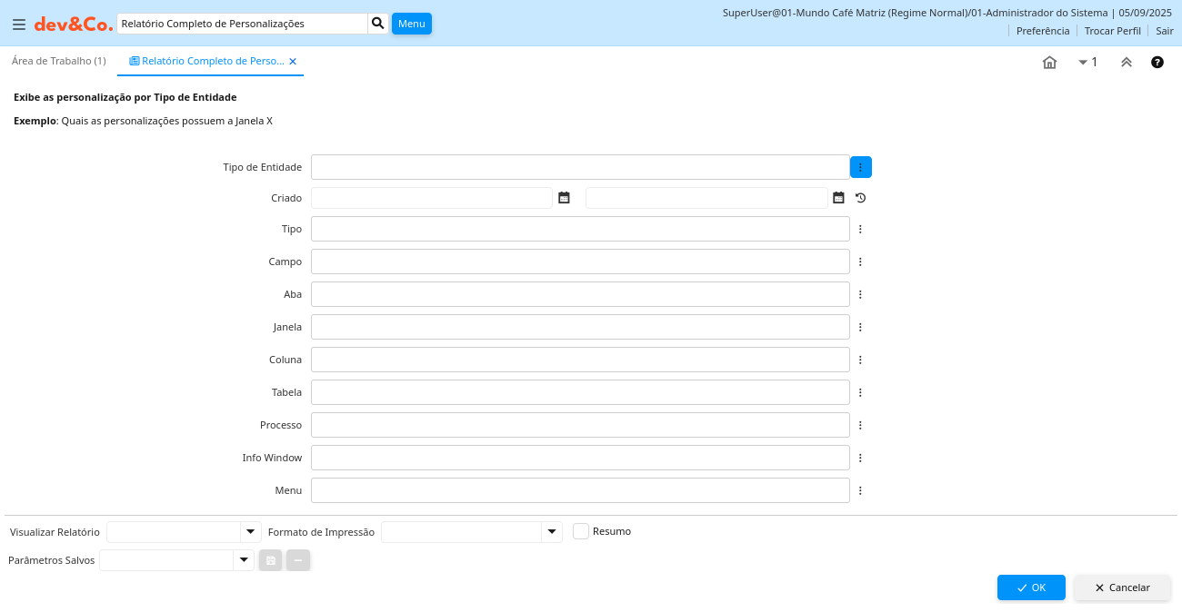 | Janela | Entrada de dados ou janela de exposição | O campo "Janela" identifica uma Janela única no sistema. | AD_Window_ID Chosen Multiple Selection Search |