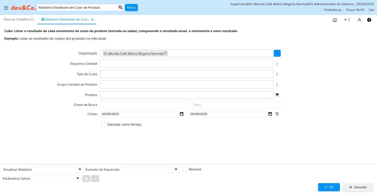 Ajuda: Exemplo: Listar os resultados de custeio dos produtos no mês atual
