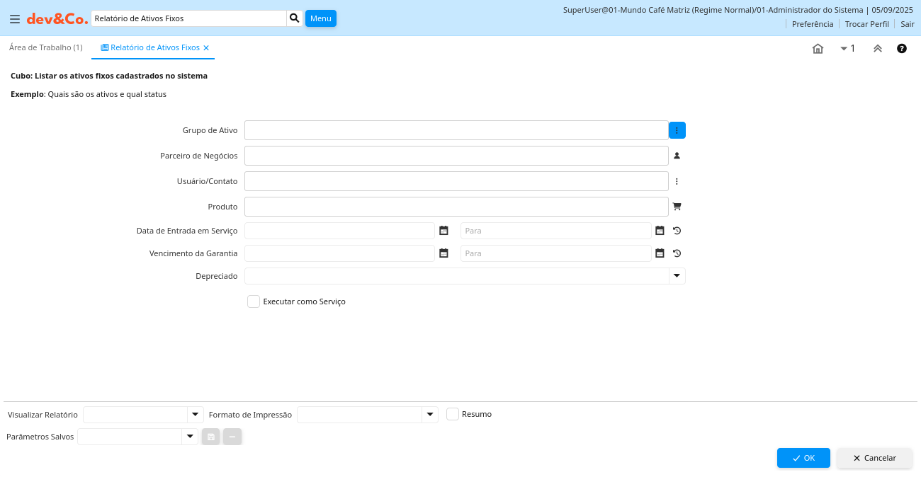 Descrição: Cubo: Listar os ativos fixos cadastrados no sistema