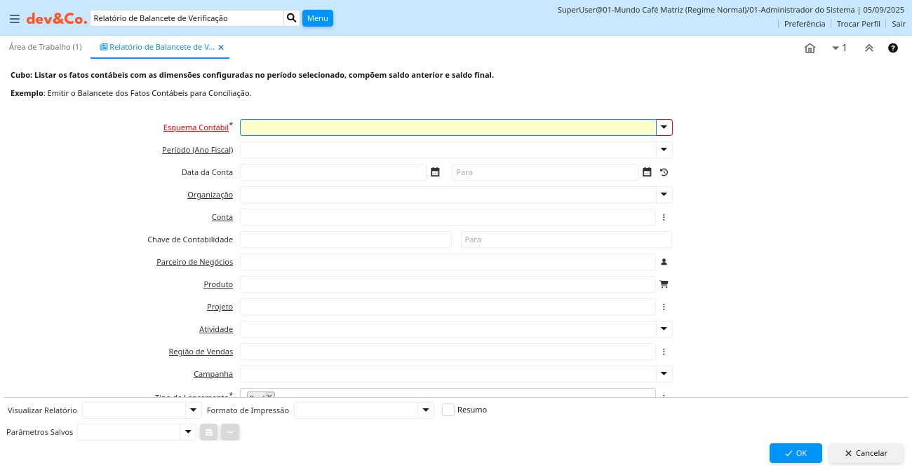 Descrição: Cubo: Listar os fatos contábeis com as dimensões configuradas no período selecionado, compõem saldo anterior e saldo final.