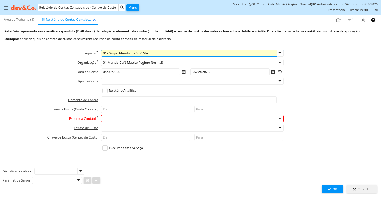 Relatório: Relatório de Contas Contabeis por Centro de Custo