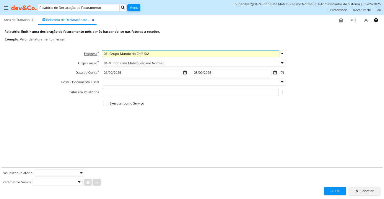 Relatório: Relatório de Declaração de Faturamento