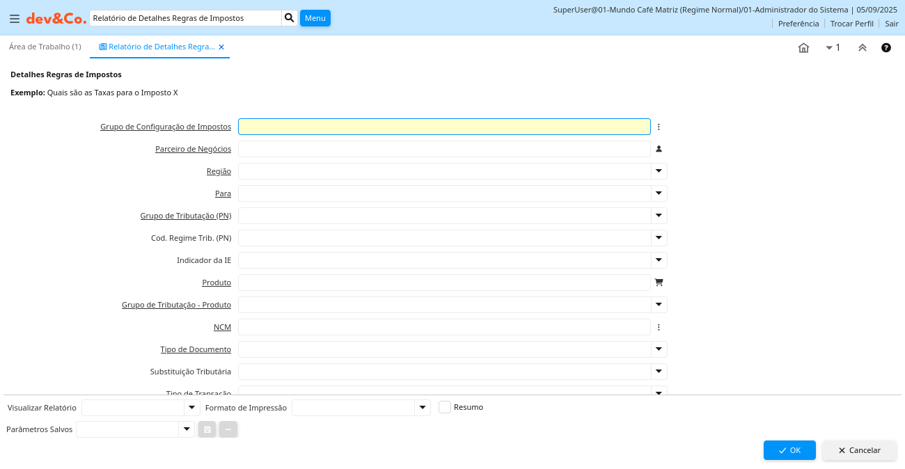 Relatório: Relatório de Detalhes Regras de Impostos