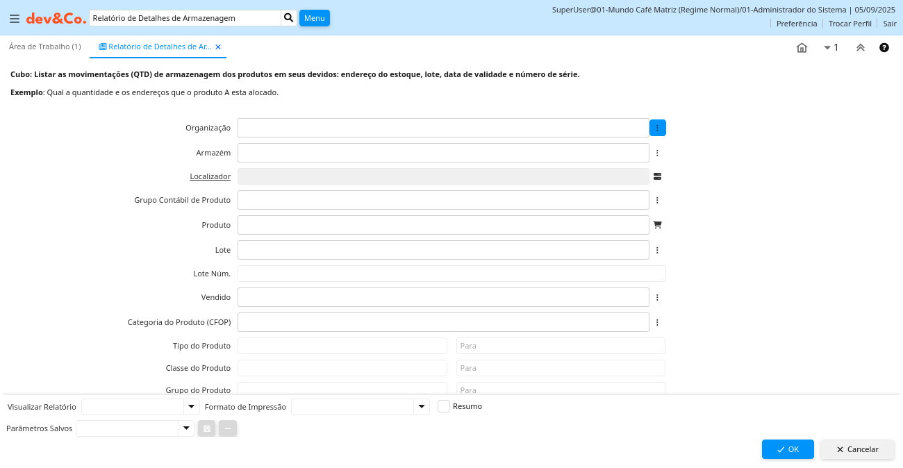 Relatório: Relatório de Detalhes de Armazenagem