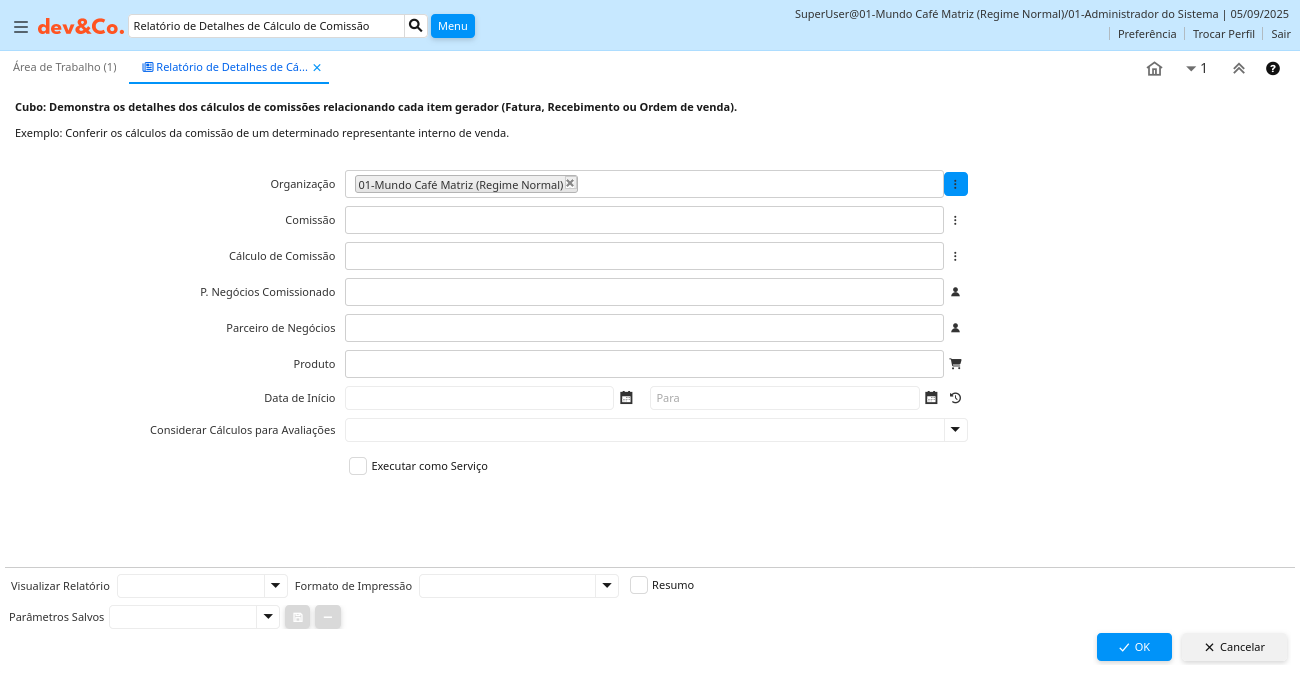 Ajuda: Exemplo: Conferir os cálculos da comissão de um determinado representante interno de venda.