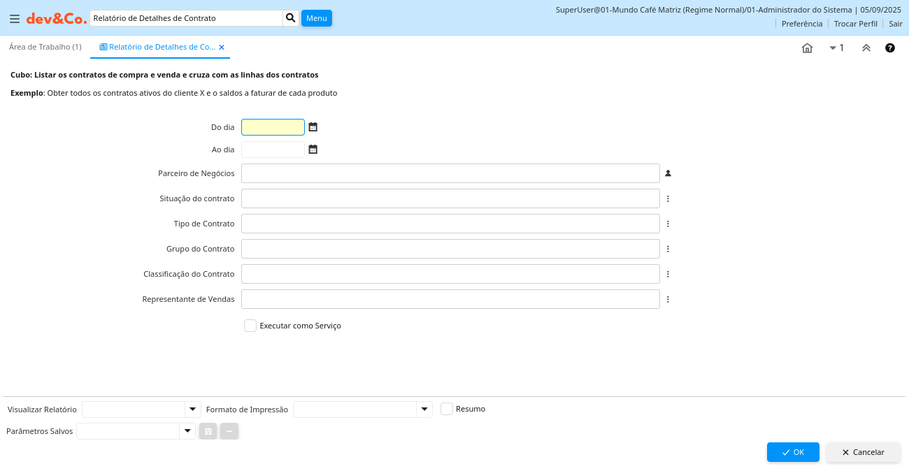 Descrição: Cubo: Listar os contratos de compra e venda e cruza com as linhas dos contratos