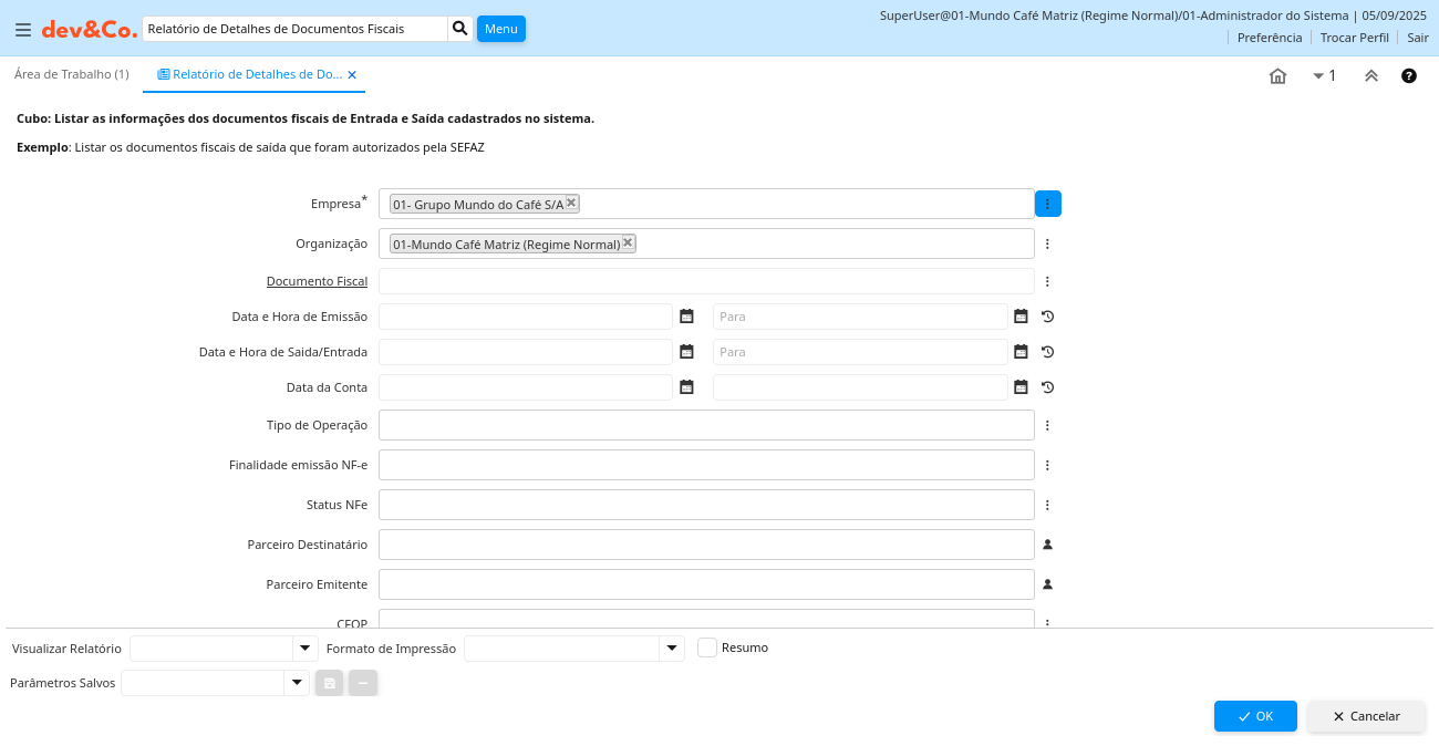 Relatório: Relatório de Detalhes de Documentos Fiscais
