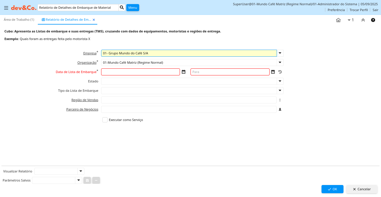 | Tipo da Lista de Embarque | cof_PackingType List | ||