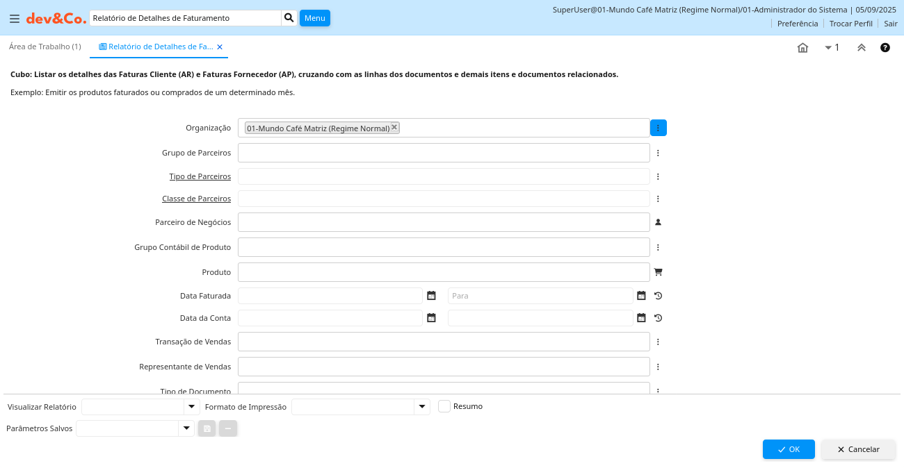 Relatório: Relatório de Detalhes de Faturamento