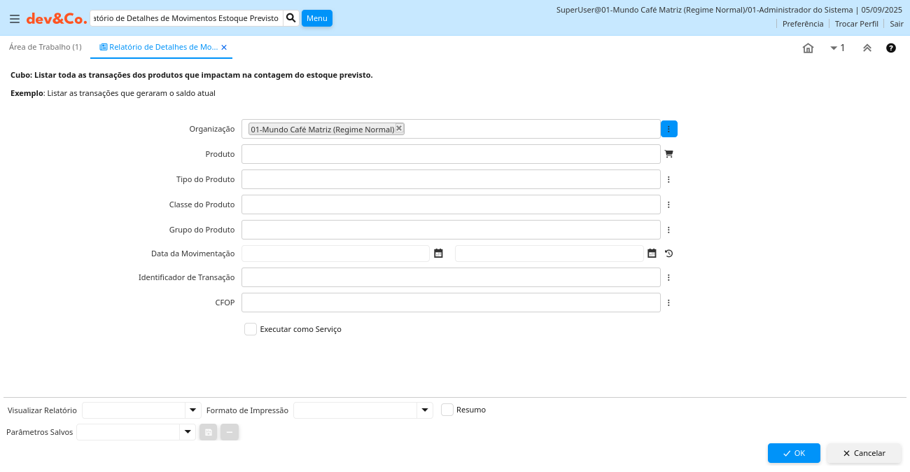 Relatório: Relatório de Detalhes de Movimentos Estoque Previsto
