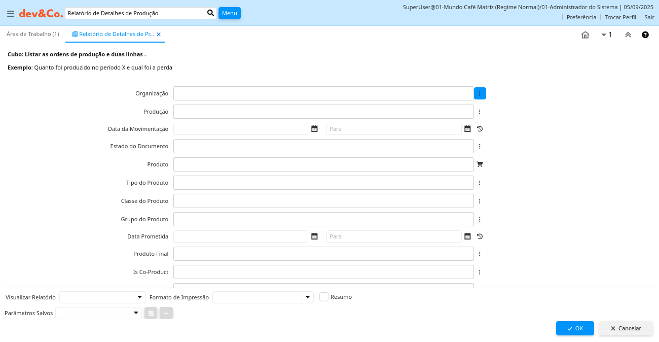 Ajuda: Exemplo: Quanto foi produzido no período X e qual foi a perda
