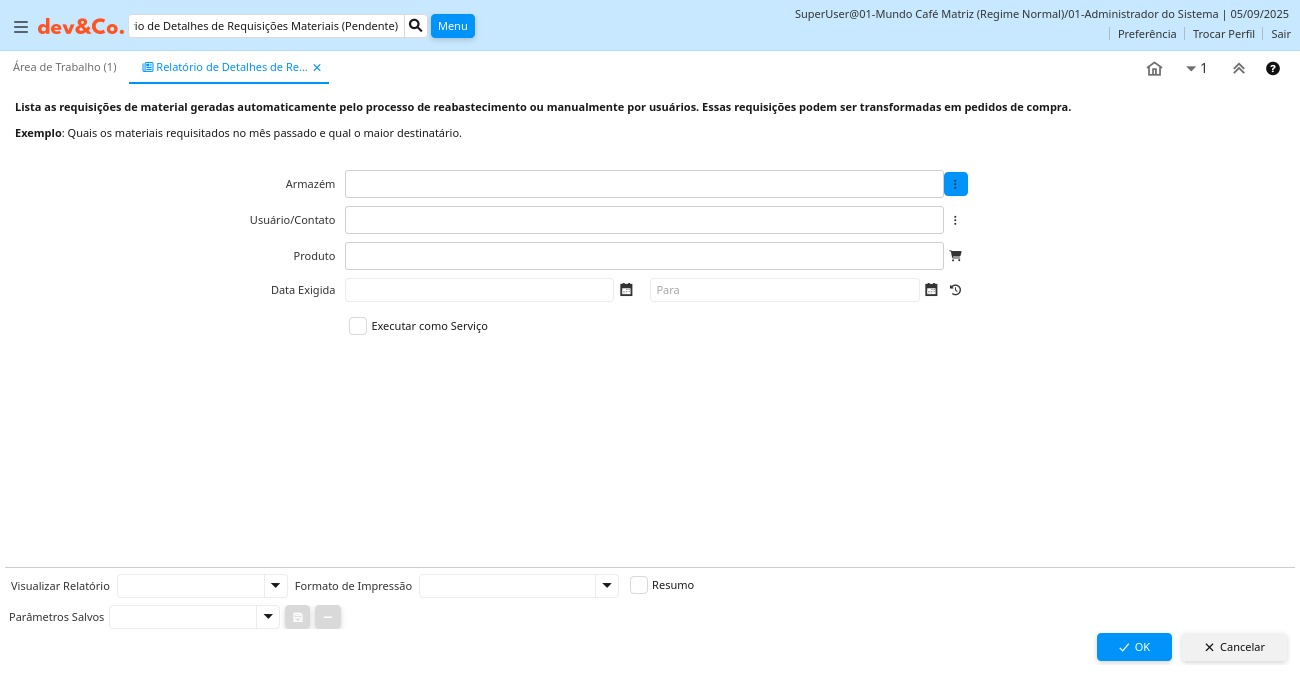 Relatório: Relatório de Detalhes de Requisições Materiais (Pendente)