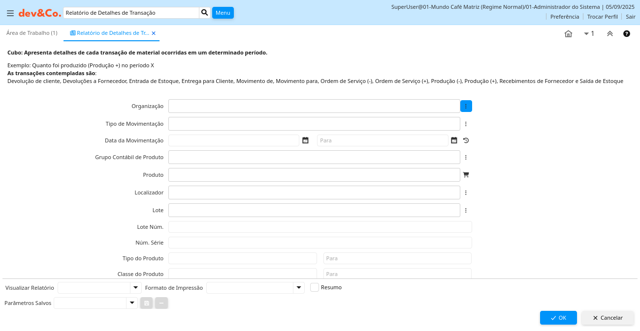 Descrição: Cubo: Apresenta detalhes de cada transação de material ocorridas em um determinado período.
