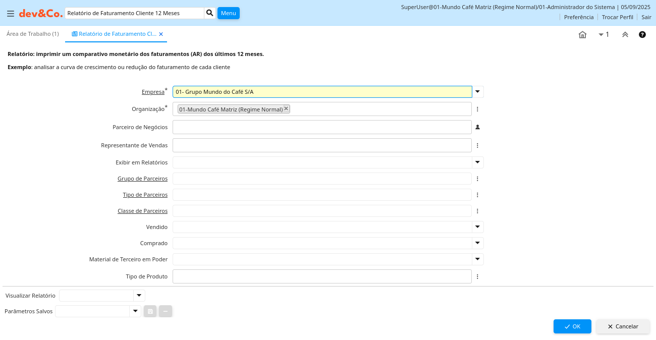 Descrição: Relatório: imprimir um comparativo monetário dos faturamentos (AR) dos últimos 12 meses.