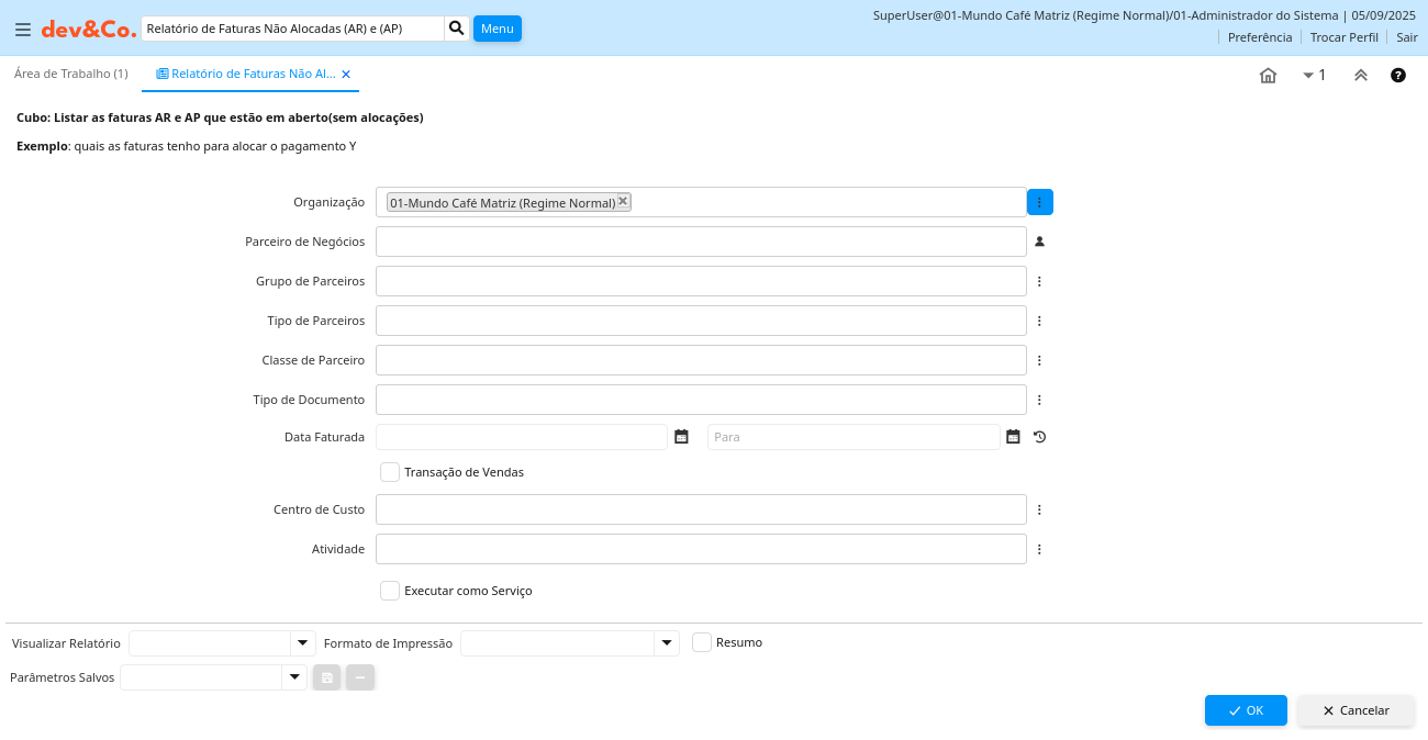 Relatório: Relatório de Faturas Não Alocadas (AR) e (AP)