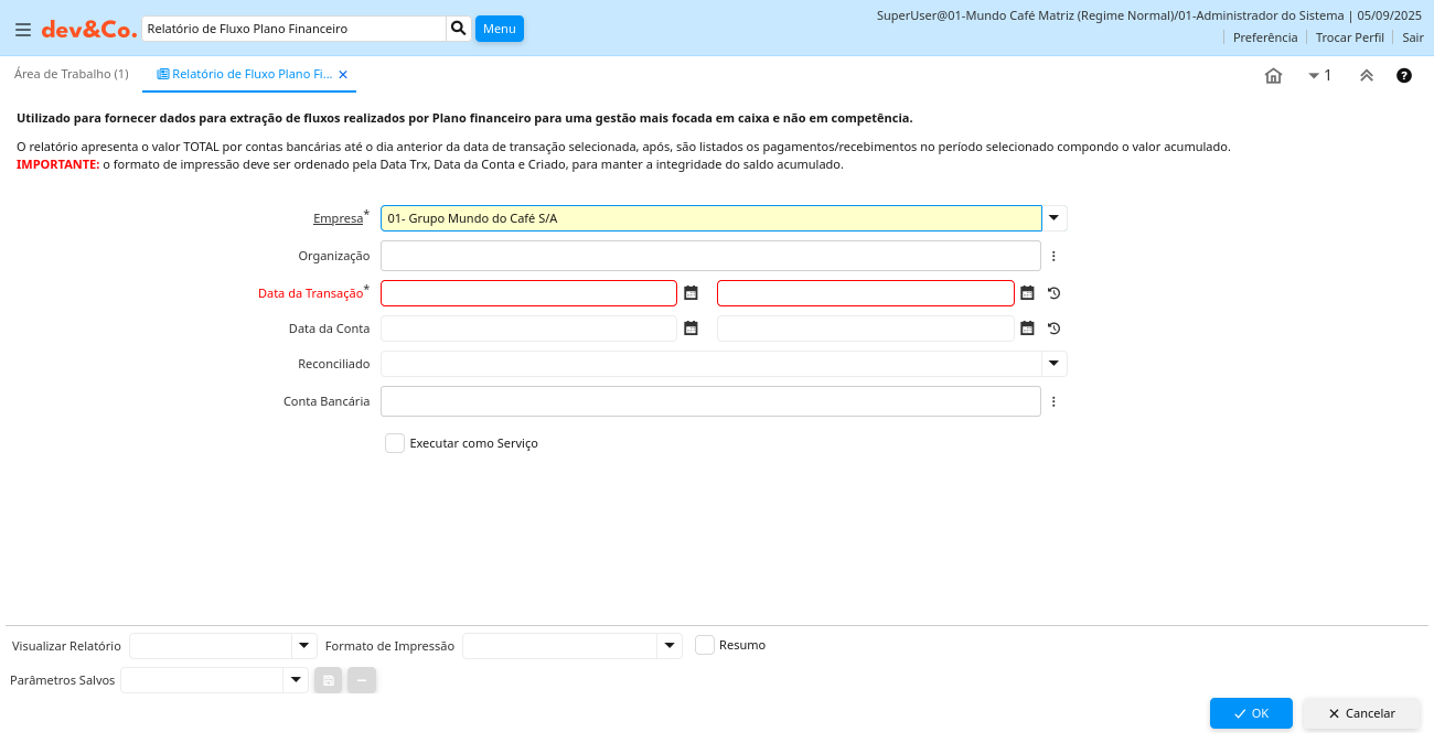 Descrição: Utilizado para fornecer dados para extração de fluxos realizados por Plano financeiro para uma gestão mais focada em caixa e não em competência.