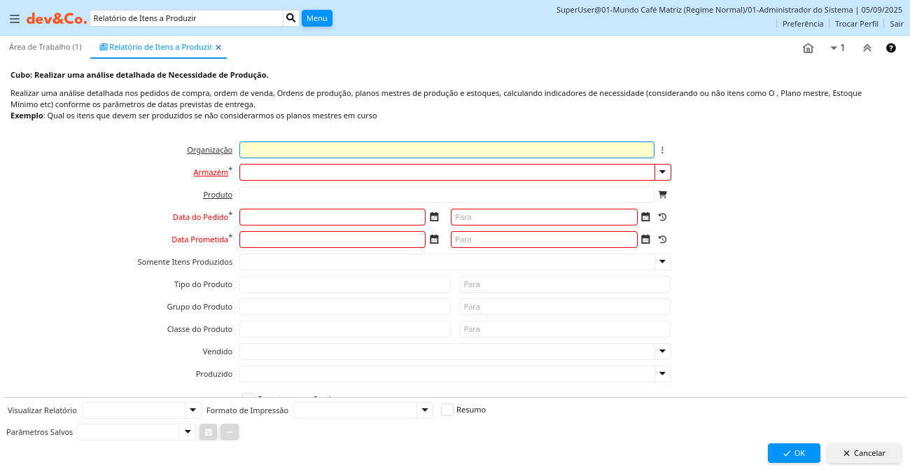| Somente Itens Produzidos | COF_isOnlyProductionIten List | ||