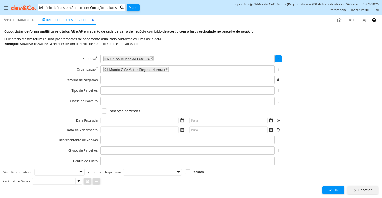 Relatório: Relatório de Itens em Aberto com Correção de Juros